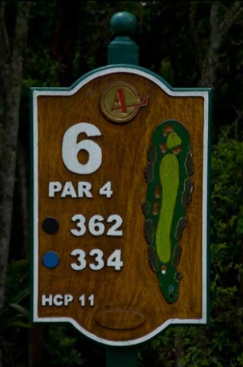 O green tem duas bancas posicionadas à sua frente, interferindo no aspecto psicológico do jogador, que estará batendo sua tacada com a visão do green num nível superior ao de seus pés.É uma tacada que exige uma trajetória alta para compensar esse desnivelamento, gerando um pouso seguro no green.