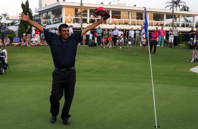 por: Ricardo Fonseca | fotos: Thais Pastor João Corteiz, de 52 anos, encerrou um jejum de dez anos ao vencer o 39º Campeonato Aberto do Arujá Golf Club, neste domingo, no tradicional clube da colônia japonesa, na cidade de Arujá. Corteiz, que somou 288 (71-72-73-72) tacadas, o par do campo, para ser campeão por ... Saiba Mais